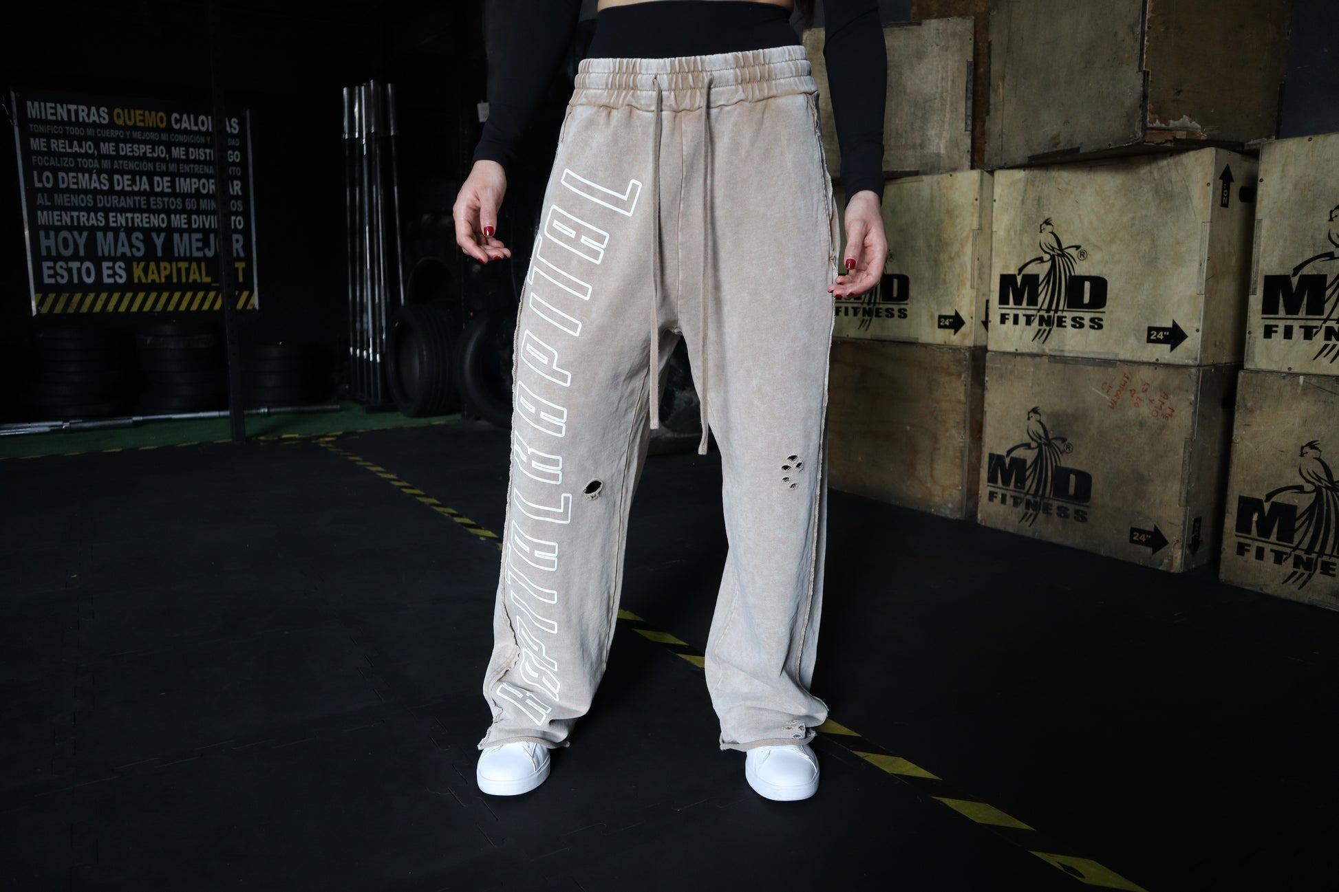 DISEÑO: Los Big Logo Joggers ofrecen un look audaz, con inspiración streetwear y un diseño gráfico único. Con su desgaste en la tela y un estampado en serigrafia de alta calidad "Kapital" a lo largo de la pierna. Diseñados con un fit holgado y cómodo, brindan estilo y libertad de movimiento.
